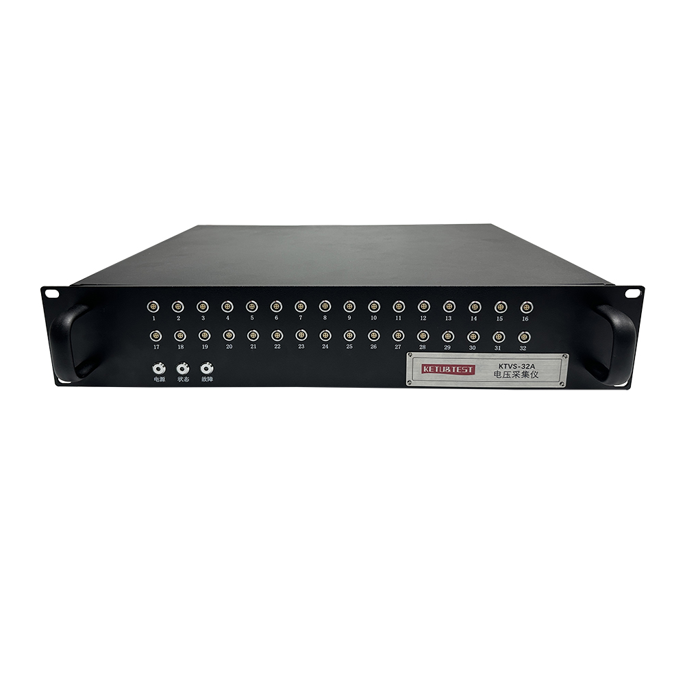 KTVS-32A is a highly integrated multi-channel voltage data acquisition device independently developed by KETU&TEST. It features 32 synchronized acquisition channels with independent galvanic isolation, achieving an acquisition accuracy of up to 0.05% FS. The device is equipped with 24-bit ADC, supports a single-channel sampling rate of up to 10 kHz, and is compatible with a voltage input range of 10 V.The system is primarily powered by an external 220 VAC supply and is also equipped with a built-in battery module. In the event of external power failure, the device automatically switches to battery power. In addition, the device provides a 24 VDC excitation power supply for external sensors, significantly enhancing operational flexibility.The device includes a built-in storage card to support local data storage, as well as offline buffering and automatic data retransmission functions.